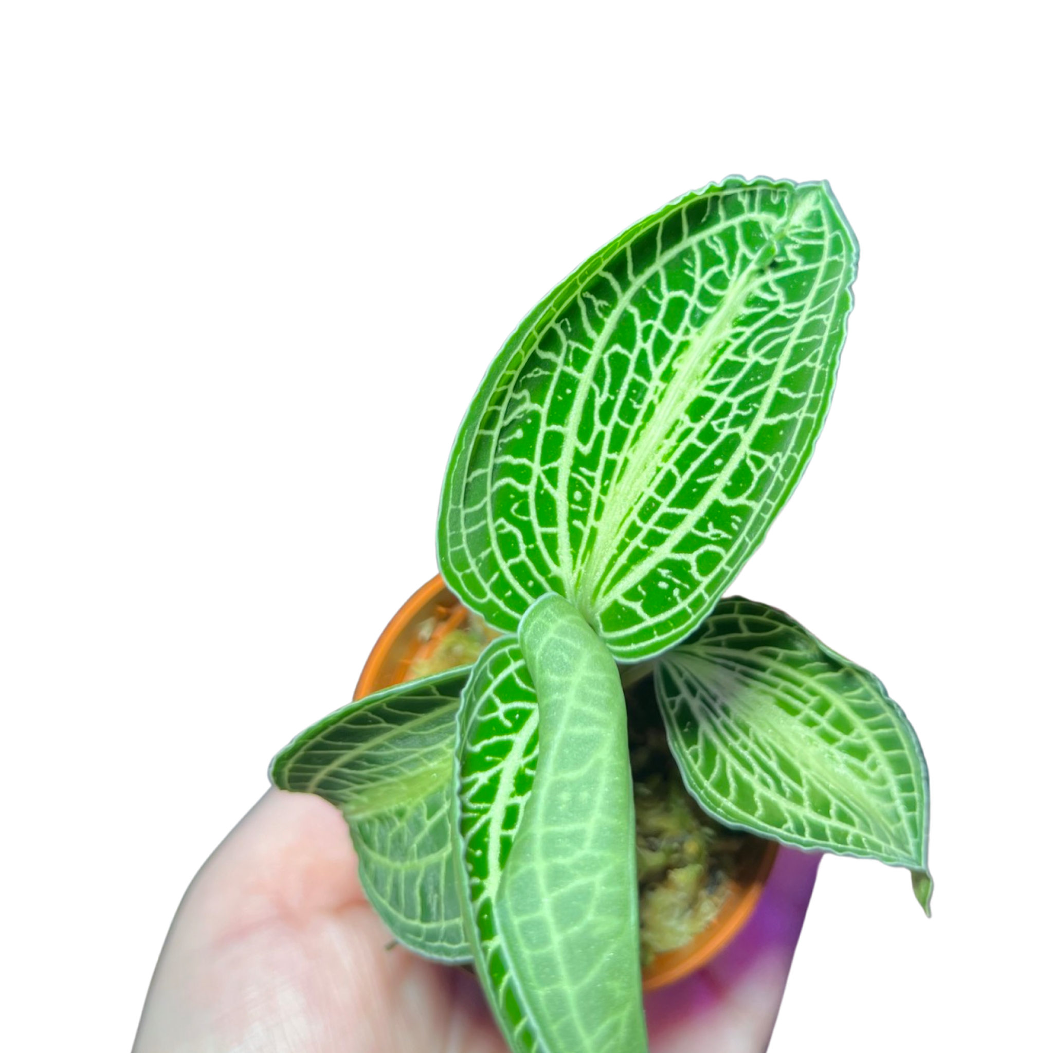 Anoectochilus albolineatus ( syn. Anoectochilus siamensis ) Elle fait partie de la famille des Orchidacées et est originaire d'Indochine, où elle pousse dans les forêts sempervirentes saisonnières et les forêts de collines sempervirentes. Cette orchidée terrestre possède des feuilles vert foncé ovales-elliptiques ornées d'une jolie veinure blanc argenté. Son port est rampant, ascendant et rhizomatique.
